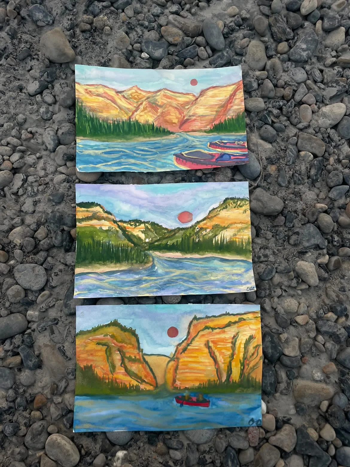 Connection. In such a short amount of time I became closely bonded with these individuals as we floated down the Naha Dehé, through vast mountain ranges and canyon walls stretching up to the sky, laughter echoing through the canyons, conversations bouncing off the walls of rock, and ample smiles being shared. In such an extraordinary place it's difficult not to feel a deeper appreciation for what surrounds you, including the humans that join you on your journey. I think many of us started this trip feeling a bit nervous and hesitant. Participants traveled from far and wide across northern Canada and also from Alaska. It was difficult to leave the comforts of home andthe people that love and support you, and more behind and entering the wilderness with other youth and guides you’ve never met. I feel extremely proud of how far everyone on this trip has come, the vulnerability that people showed, and the bravery displayed from the beginning to the end of the trip. Despite initial nervousness and reservations, everyone persevered and put themselves out there with the group. We were there for each other– ready to offer kindness and a hug, to sit and listen to one’s story, to show empathy, and to celebrate our successes together. The differences that existed between us, our various Indigenous cultures and communities, was bridged and became interweaved. While we sat around the fire or floated down the river, we would always share whether it was a delicious meal, bits and pieces of our cultures, traditional stories from the land, and even beautiful artwork.